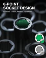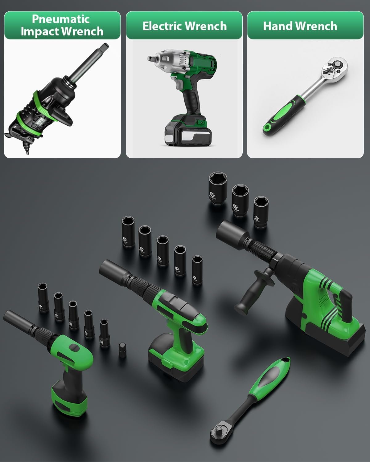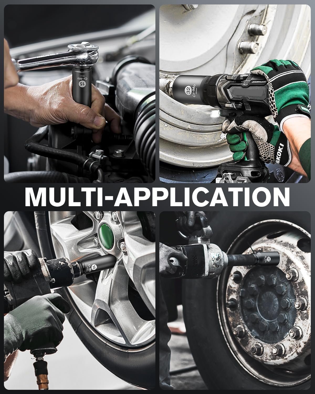 - PERFECT HEXAGONAL DESIGN: the design of the 1/2 inch hex impact socket set increases the contact area between the nut and the fastener, increases the locking force and prevents slipping, giving you a stronger grip. With the bolt locking holes, the sleeve can be secured against falling.