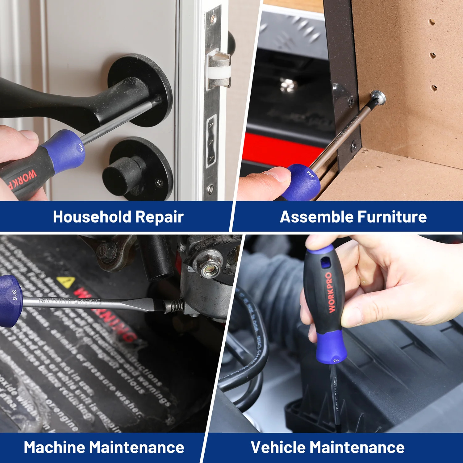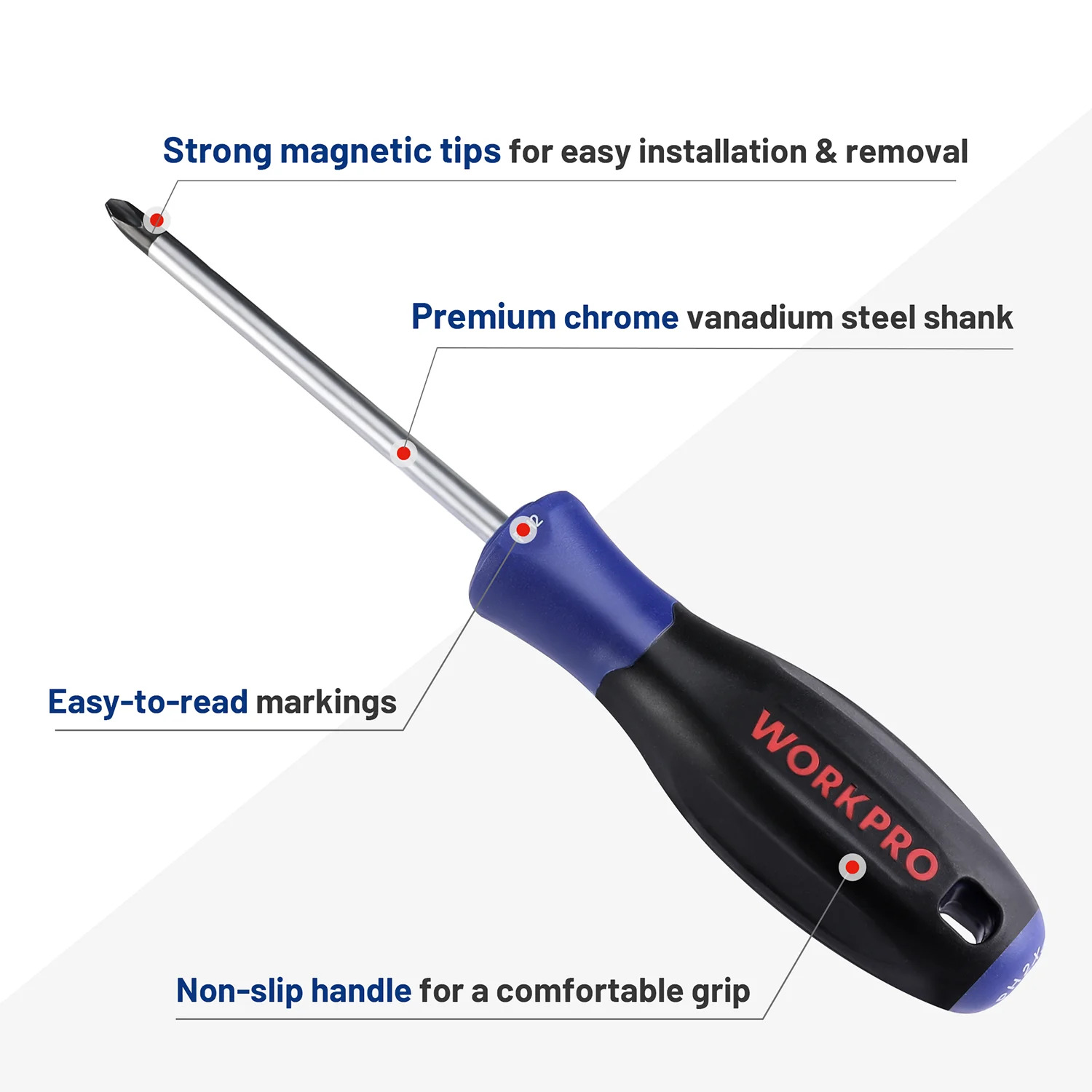 - Convenient Design: Eye-catching size marks and handle holes for easy access and storage; magnetic tips help pick up scattered screws.